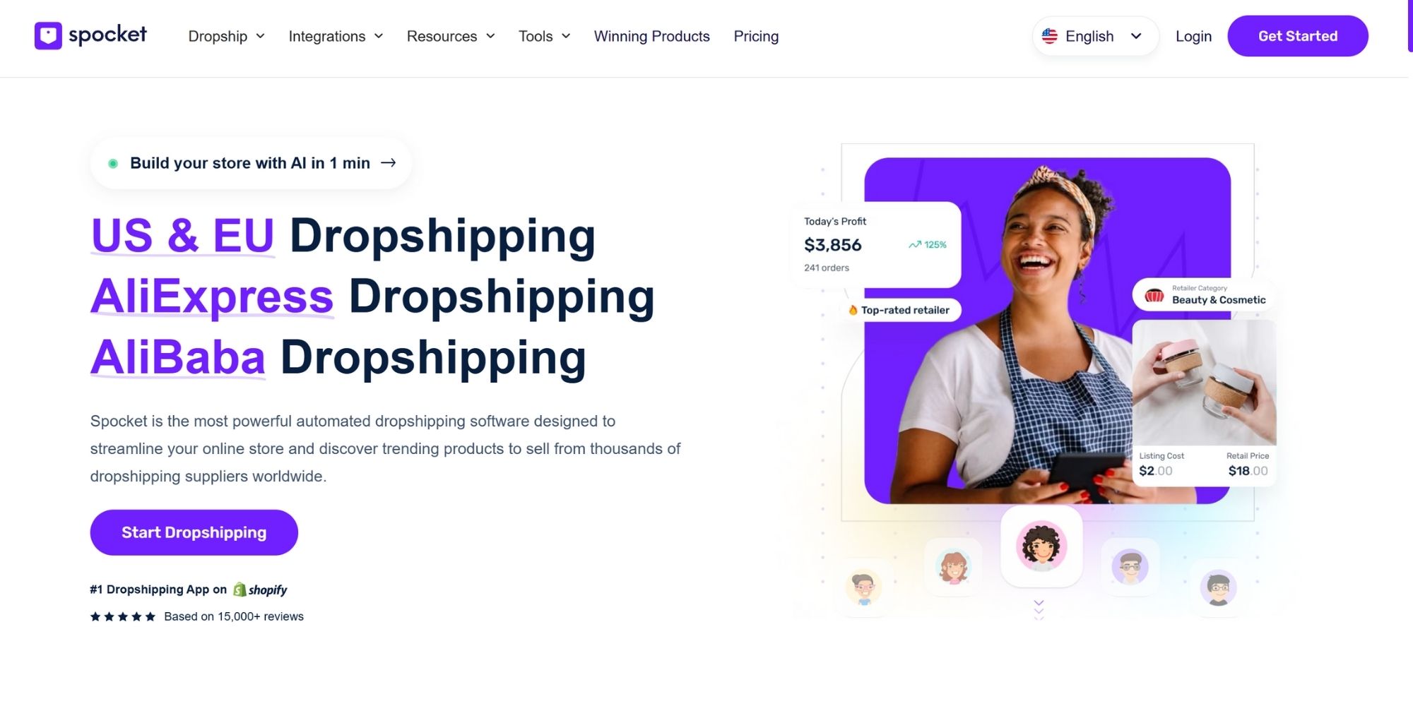 Spocket focuses on vetting suppliers primarily in the US and Europe. This guarantees speed but comes at a steep price.